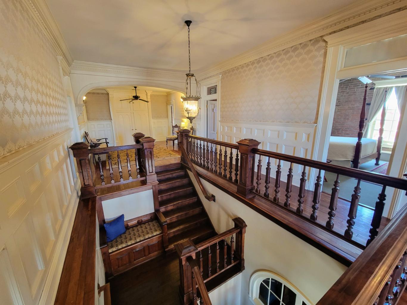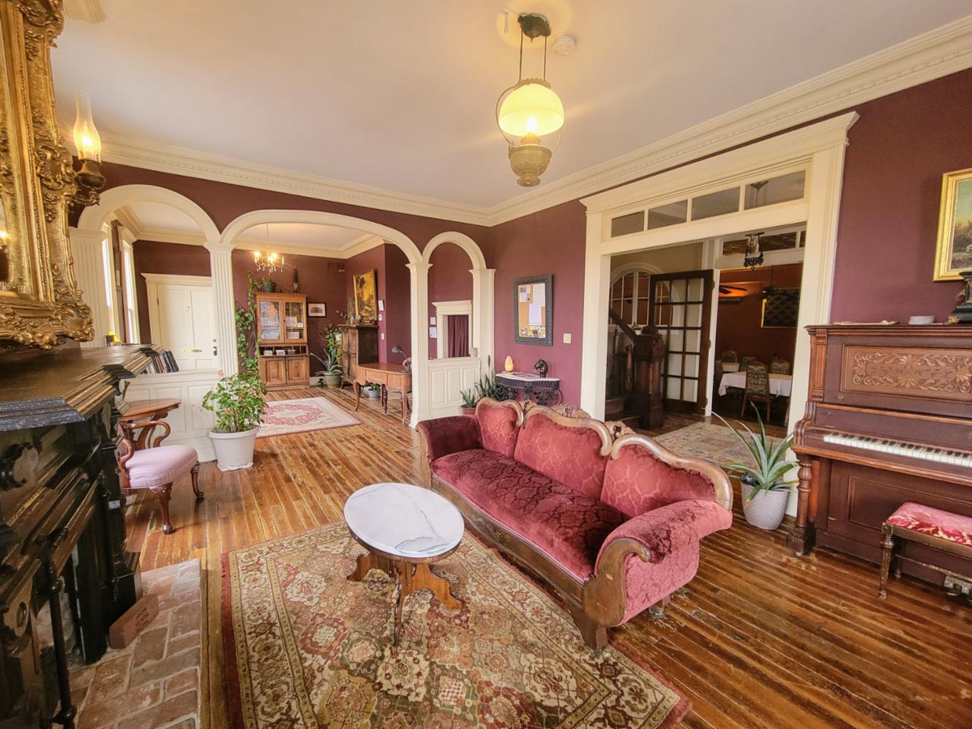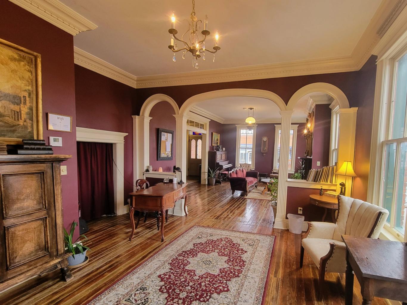 The Reading room is located in an annex building next to the original hotel and has a private entrance onto Main Street. There are 2 queen beds and private bath with clawfoot bathtub. The Reading room shares the annex building with the New Orleans room, and the two can be joined if booked together. * This is one of our pet friendly rooms *