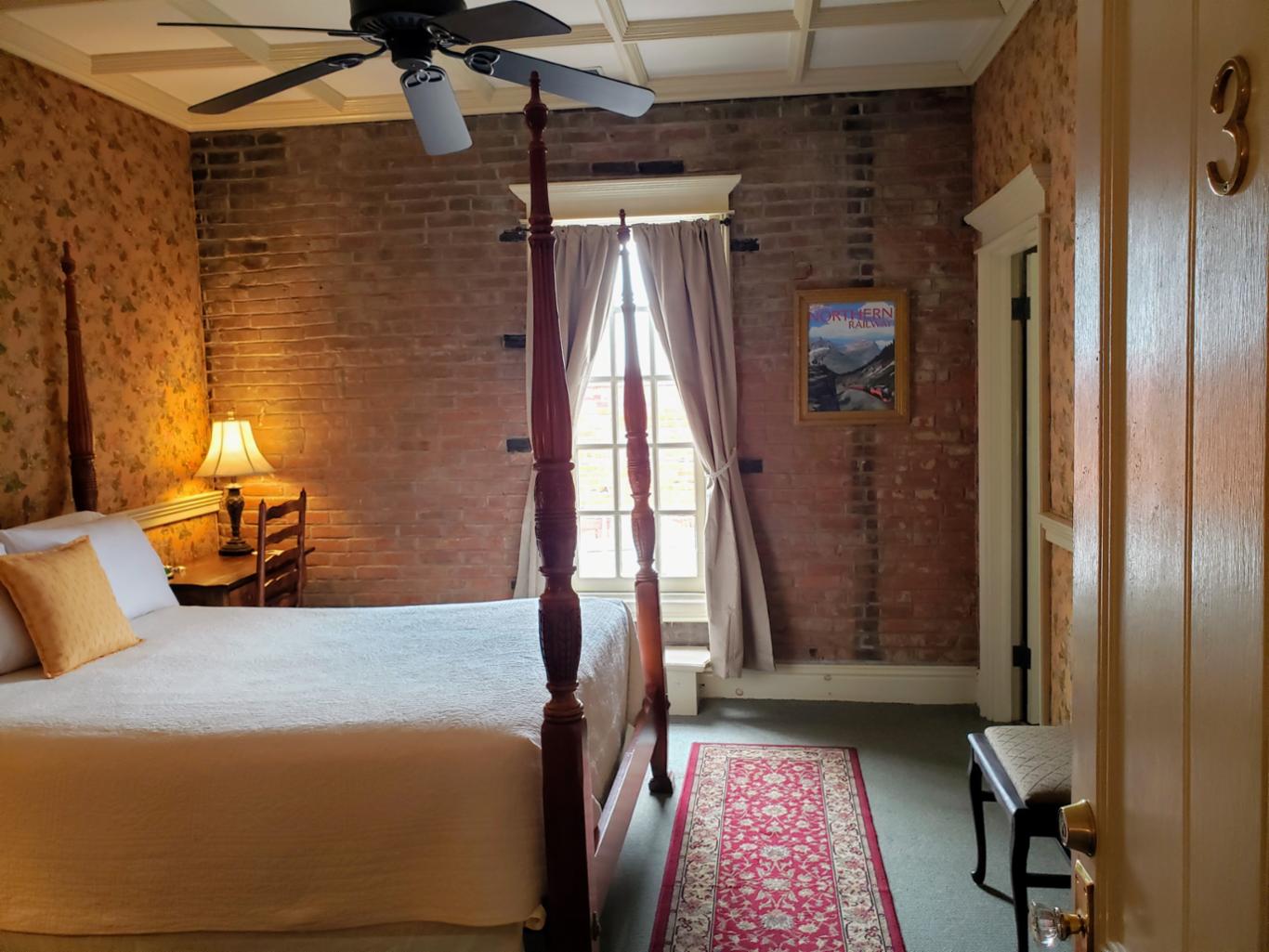 The Reading room is located in an annex building next to the original hotel and has a private entrance onto Main Street. There are 2 queen beds and private bath with clawfoot bathtub. The Reading room shares the annex building with the New Orleans room, and the two can be joined if booked together.